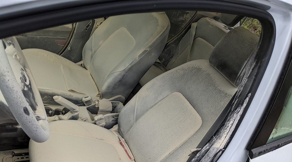 Eine Woche später wurde das Fahrzeug auf einem Firmenparkplatz in der Leipziger Straße gefunden. „Es ist im Innenraum vollständig mit Feuerlöschpulver besprüht worden, um Spuren zu verwischen“, erklärt Peffermann. Besonders auffällig: Der Fundort des Fahrzeugs ist rund 650 Meter von der Zeppelinstraße entfernt. Die besondere Ostereiersuche der Täter ist nicht nur ärgerlich, sondern auch kostenintensiv. Der Sachschaden beläuft sich laut der Schätzung der Polizei auf rund 8.000 Euro. „Die Stimmung im Haus ist seither sehr getrübt. Unsere Erste-Hilfe-Kurse können derzeit nicht in unseren Räumlichkeiten stattfinden, da sich die Lieferungszeiten der Bürotüren auf mehrere Monate belaufen“, so Peffermann abschließend.