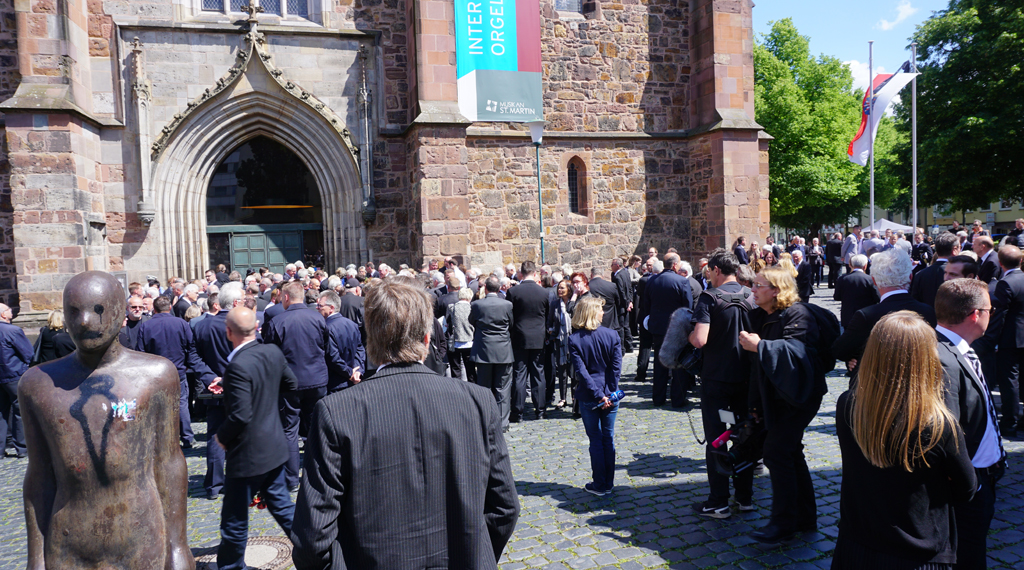 Mit einem bewegenden Trauergottesdienst in der Kasseler Martinskirche haben am Donnerstag mehr als 1.400 Menschen Abschied von dem Kasseler Regierungspräsidenten Dr. Walter Lübcke genommen. Neben der Familie und dem Freundeskreis nahmen auch zahlreiche politische Weggefährten an dem Gottesdienst teil. Unter anderem hatte das gesamte Kabinett von Hessens Ministerpräsident Volker Bouffier (CDU) Lübcke die letzte Ehre erwiesen. Auch die ehemaligen Ministerpräsidenten von Hessen, Prof. Dr. h.c. mult. Roland Koch (CDU) und der Oberbürgermeister der Stadt Kassel a.D. Hans Eichel (SPD) wohnten dem Trauergottesdienst bei.