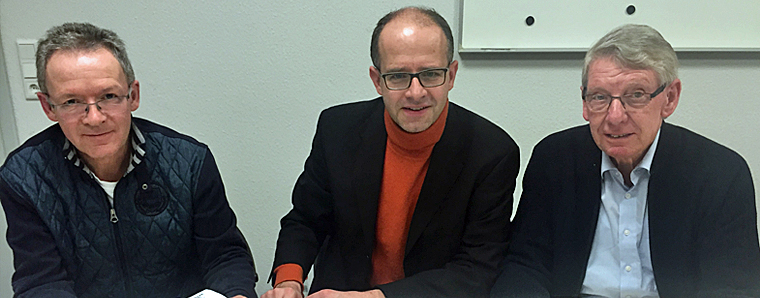 „Trassendiskussion“ Jakob Brähler (links) und Karl-Heinz Kaib (rechts) von der BI Kalbach im Gespräch mit Bundestagsabgeordnetem Michael Brand