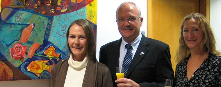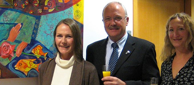 Ihre aktuellen Bilder erzählen von einem regionsbezogenen Projekt, das den Menschen ihre Heimat wieder etwas näher bringen soll. Die Serie nennt sie „Rhön-Glück“ und ist derzeit im Poppenhausener Rathaus erstmals ausgestellt. Bürgermeister Manfred Helfrich zeigte sich bei der Vernissage im Rathaus-Foyer beeindruckt von den hochinteressanten Motiven, die das Rathaus für die Dauer der Ausstellung bereichern. Diese zeigen ästhetische Körper und hübsche Gesichter von Frauen sowie verschiedene Tiere, die der Rhön typisch sind. Die Künstlerin verstehe es hervorragend, Farbübergänge und Schattierungen in Szene zu setzen. Die bunte Farbauswahl vermittele Leichtigkeit und Fröhlichkeit. Der Malerin wünschte er weiterhin viel Freude und Erfüllung bei ihrer kreativen Arbeit.