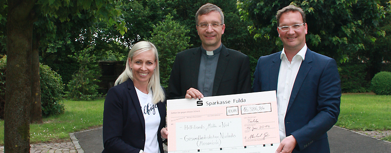 „Für die großzügigen Spenden aus Anlass meiner Amtseinführung am 31. März möchte ich allen, die dazu beigetragen haben, von ganzem Herzen danken“, betont der Fuldaer Bischof Dr. Michael Gerber. Insgesamt sind 16.386,84 Euro für den Bischöflichen Hilfsfonds „Mütter in Not“ sowie die Gesundheitsstation Nsaladzi in Mosambik überwiesen worden, die sich den Betrag teilen. Bischof Gerber überreichte am Montag SkF-Diözesanreferentin Sarah Muth und missio-Referent Steffen Jahn symbolisch einen Scheck über den Gesamtbetrag.
