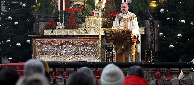 Dem setzte der Bischof die Konkretheit des Weihnachtsgeschehens entgegen. Gott erscheine nicht als Idee, sondern zeige sich „in der Gestalt eines Menschen, in der Gestalt eines ganz konkreten Menschen, in der Gestalt des Kindes von Bethlehem“. Die letztgültige Orientierung des christlichen Glaubens sei daher keine Idee, sondern ein konkreter Mensch.