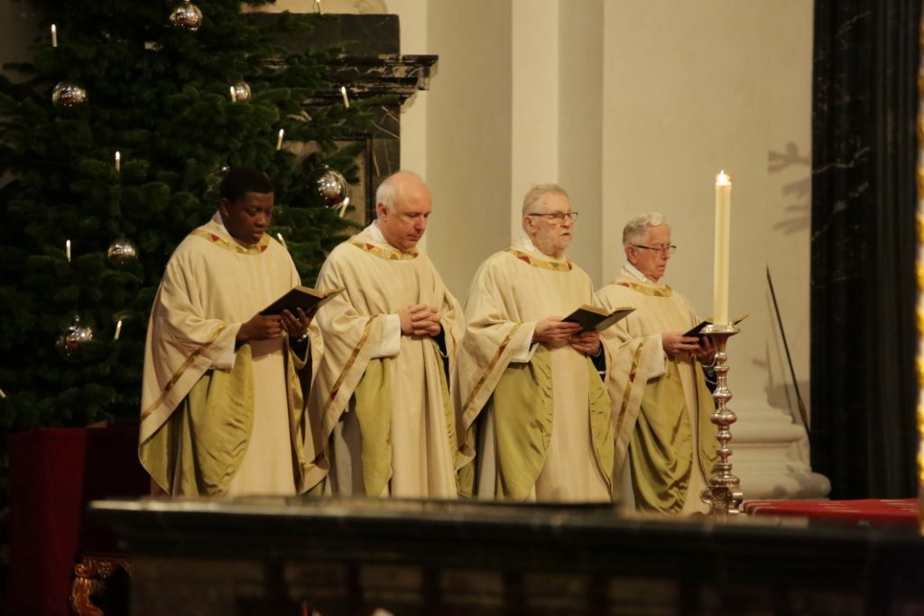 Weiter hat der Ständige Vertreter des Diözesanadministrators, Domkapitular Prof. Dr. Gerhard Stanke vor einer Verrohung der Sprache gewarnt. Immer öfter, in öffentlichen Auseinandersetzungen oder den Medien, könne man eine solche vernehmen. „Etwas, das uns wirklich nachdenklich stimmen sollte“, sagte er. Ihr entgegenwirken können einzig Taten, die Versöhnung stiften und wie sie Jesus begangen habe. Mauern oder Barrieren zu errichten, könne hierauf sicherlich nicht die Antwort sein. Für gute Taten und versöhnende Worte biete das Neue Jahr sicher reichlich Gelegenheit.