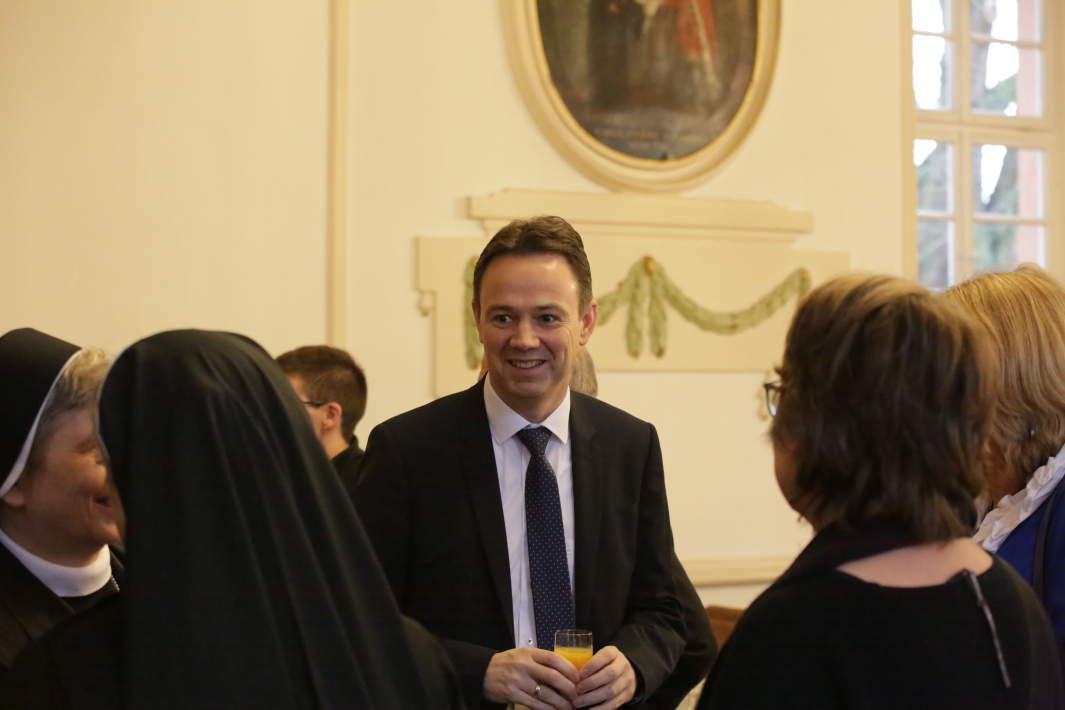 Den anschließenden, traditionellen Neujahrsempfang des Bistums im Refektorium des Bischöflichen Priesterseminars, dem traditionell Abgeordnete des Deutschen Bundestags, Hessischen Landtags, Kreistags, Vertreter des Stadtparlaments und sämtliche Ordensgemeinschaften sowie Gemeinschaften des geweihten Lebens beiwohnen, nutze der Ständige Vertreter des Diözesanadministrators, um sich bei den hauptamtlich sowie ehrenamtlich Tätigen der Caritas, in den Verbänden und Gremien auf Pfarrei und Bistumsebene herzlich für ihr Engagement zu bedanken. „Ihnen allen meine hohe Wertschätzung und meinen herzlichen Dank für Ihr Engagement. Es ist ein Zeugnis für die Kraft des Evangeliums und ein Zeichen gegen die Gleichgültigkeit, die Papst Franziskus immer wieder kritisiert.“