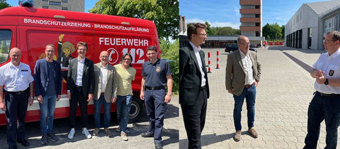 Das weitere Programm fokussierte Organisationen im Bereich des Schutzes und der Hilfeleistung für die Bevölkerung. Hofmann und Eckert trafen Jan Fäller, Zugführer des THW-Ortsverbands Fulda. Die hochmoderne Fuldaer Rettungsleitstelle wurde Ihnen von Thomas Steinbrucker, Sachgebietsleiter der Leitstelle, ausführlich gezeigt. Ein vom Land Hessen gefördertes Fahrzeug zur Brandschutzerziehungsarbeit führten der Kreisbrandinspektor Adrian Vogler und Steffen Hohmann vom Fachdienst Gefahrenabwehr des Landkreises Fulda vor. Die beiden Abgeordneten stellten fest: „Immer ist die richtige und ausreichende personelle und materielle Ausstattung entscheidend für das Gelingen der jeweiligen Aufgabe und damit für das Wohl der Bevölkerung. Vielerlei war beeindruckend zu sehen: das technische Gerät und die Professionalität der THW-Einsatzkräfte sowie die hochmoderne Einrichtung und die konzentrierte Arbeitsatmosphäre in der Fuldaer Rettungsleitstelle. Das Fahrzeug für die Brandschutzerziehung zeigt, wie bereits Kinder ein Bewusstsein für Gefahrenlagen entwickeln lernen und gleichzeitig für das so wichtige Ehrenamt in den Blaulichtorganisationen begeistert werden können.“ +++ pm