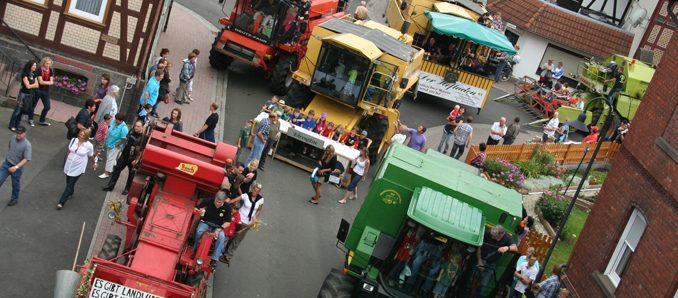 Im Anschluss der Parade findet sich auf dem Platz vor dem Dorfgemeinschaftshaus ein wahres Volksfest. Gegrilltes, kühle Getränke, Wein und Cocktails werden dort bis in die späten Abendstunden angeboten. Auch das Fahrerlager der Blinklichtmähdrescherfahrer wird an dieser Stelle aufgeschlagen werden, eine umgebaute Zapfanlage mit einem Mähdrescher ist dort der „Hingucker“. Für Kinder wird im Dorfgemeinschaftshaus eine Spielecke mit ferngesteuerten Traktoren aufgebaut. +++ fuldainfo | pw