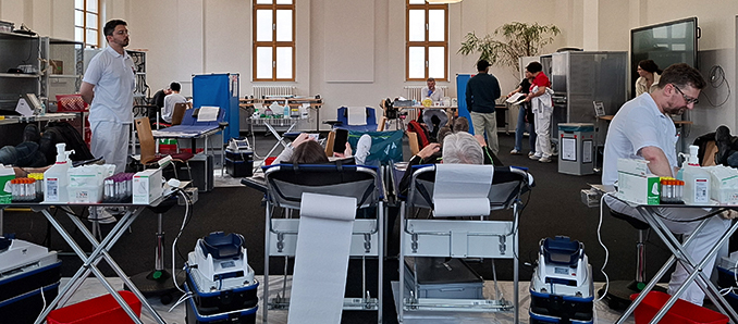 Zum zweiten Mal nach 2024 veranstaltete die me:care Pflegefachschule zusammen mit dem DRK-Blutspendedienst Baden-Württemberg/Hessen eine Blutspendeaktion in ihren Räumen. Neben vielen bekannten Spendern beteiligten sich auch elf Personen zum ersten Mal. Sie retteten mit ihrem Einsatz Leben. Millionen Menschen benötigen jedes Jahr Blut. Es ist unersetzlich für die medizinische Versorgung. Bei der Behandlung von Krankheiten oder nach Unfällen und Operationen gibt es keine Alternative. Krankenhäuser brauchen unbedingt genügend Blutkonserven. Damit das klappt, braucht es neue Spender. Die Spender von heute sind möglicherweise die Patienten von morgen. Neue Spender sind also immer willkommen.