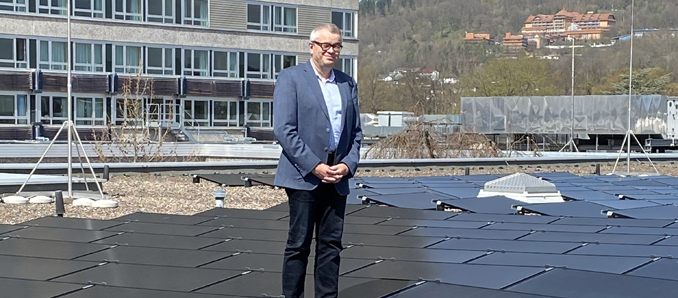 Die Tage werden länger, die Sonne scheint wieder kräftiger. Und das bedeutet eine Menge erneuerbare Energie! Davon profitiert nun auch die Hessische Hochschule für Finanzen und Rechtspflege in Rotenburg an der Fulda. Der Rektor der Hochschule, Karl Jennemann, machte sich selbst ein Bild von der neuen Photovoltaikanlage auf dem Dach des Studienzentrums. Foto: privat