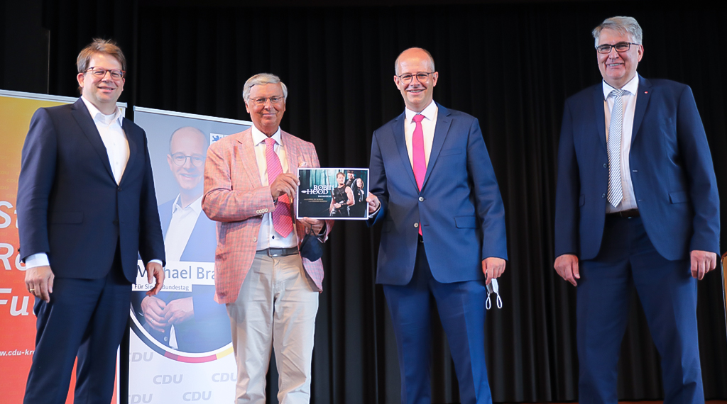 „Die Ära Merkel geht zu Ende und umso wichtiger ist es, wer unser Land in Zukunft steuert und stabil hält. Bei der Wahl entscheidet sich, ob Deutschland in der Mitte verankert bleibt oder zur Seite kippt. Nie haben die Länder unser Land vorangebracht, es war immer die breite Mitte, die Deutschland ordentlich durch die Herausforderungen gesteuert hat. Und Deutschland ist bei allen Problemen deutlich besser durch schwierige Zeiten gekommen als die meisten anderen. Und auch in diesen Tagen – wir sind heute mit der Mittelstandsvereinigung zusammen, eine weitere Besonderheit dieser Veranstaltung ist, dass der Junge Mittelstand heute hier vertreten ist, den ich hiermit herzlich begrüße. Es ist wunderbar, dass Ihr da seid, dass sich die Volkspartei CDU von jung bis alt, vom Wirtschafts- bis zum Sozialflügel, als breite Volkspartei als Angebot der Mitte dieser Bundestagswahl am 26. September stellt.“ Weiter ging der Wahlkreisabgeordnete auf die Wirtschaft ein. „Die Zeichen stehen wieder auf Erholung. Die Zahlen, die gestern und vorgestern, in den letzten Tagen und Wochen gekommen sind, geben Hoffnung. Und vor der Pandemie hatten wir langjähriges Wachstum, Rekordbeschäftigung, Überschüsse im Haushalt, und – auch das muss man sagen – gegen Widerstand haben wir die Verschuldung in Deutschland wieder zurückgeführt. Und wer sich mal zurückerinnert, dass das hier von Wolfgang Schäuble als Fetisch bezeichnet wurde. Die schlichte Wahrheit ist, wenn die Union mit ihrer soliden Finanzpolitik diese Spielräume nicht erarbeitet hätte mit den Unternehmen, gerade mit dem Mittelstand und den Beschäftigten, dann wären viele von diesen Milliarden Hilfspaketen nicht möglich gewesen. Insofern behält der Spruch, wenn es gut läuft, Vorsorge zu treffen, um dann in der Not auch einzugreifen, seine Gültigkeit.“ Auf den heimischen Wahlkreis heruntergebrochen sagte der Direktkandidat: „Ebenso geht es bei dieser Bundestagswahl, die führende Rolle der CDU hier im Wahlkreis zu verteidigen. Mit einem starken Direktmandat und Netzwerk ist uns für unsere Region in der Vergangenheit viel gelungen, oft mit strategischer Weichenstellung. Das war das, was unsere Region immer ausgezeichnet hat.“