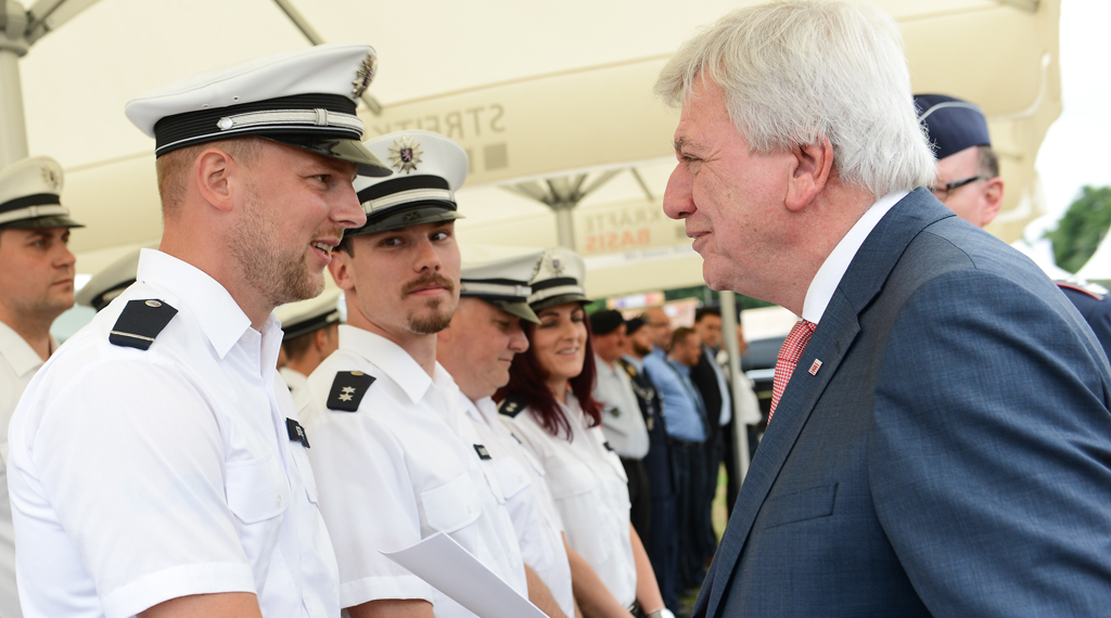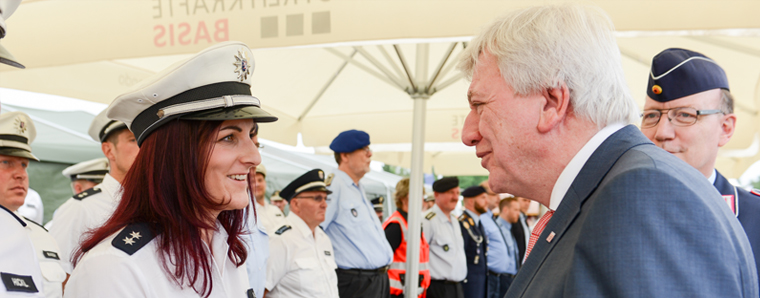Wiesbaden/Korbach. Der Hessische Ministerpräsident Volker Bouffier hat auf dem Hessentag in Korbach Angehörige der hessischen Polizei, Bundespolizei, Justiz und Bundeswehr für ihr besonderes Engagement geehrt.