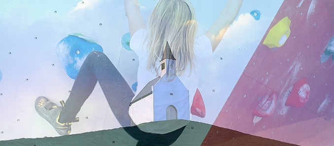 An Kletterwänden geht’s nach oben, also wie auf einer Himmelsleiter, aber mit Sicherheitsgurt, um bei einem durchaus menschlichen Fehltritt den Totalabsturz zu vermeiden. Fast wie früher. Waren nicht auch die Gottesdienstbesucher auf dem Weg nach oben, ohne Seil, aber mit Gottvertrauen? Doch die Boulder wollen nicht wirklich nach oben. So wie Bäume nicht in den Himmel wachsen, ist die Spitze sehr bald erreicht und die Kletterer wollen gleich wieder nach unten, bodenständig halt. Geblieben ist jetzt als Umkleidekabine der alte Beichtstuhl, den ich als Junge gehasst habe, denn was sollte ich darin beichten? Etwa Lausbubenstreiche und den Mundraub in Nachbars Apfelbaum, letztlich belohnt mit zwei „Vater unser“ Buße?