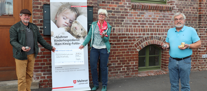 Auch die Bouleszene wurde von der aktuellen Pandemie getroffen, Ligaspiele wurden abgesagt, keine Wettkämpfe mehr. Bundesweit 38 Mannschaften hatten sich im Sommer trotzdem entschlossen gegeneinander anzutreten und dabei Gutes zu tun, heißt es in einer Mitteilung. „Es ging nicht um Preisgelder oder Pokale, sondern um die Freude am sportlichen Kräftemessen“, verrät Eberhardt Kuschnik, Präsident Boulodromedare Fulda. Und alles für den guten Zweck, denn das Kräftemessen fand als Charity-Cup statt. Jeder Spieler konnte eine Spende als Startgebühr geben. „Die Spiele fanden unter der Berücksichtigung der aktuellen Situation statt und nur die jeweiligen Paarungen waren vor Ort“, erklärt Wolfgang Kapfer, Spieler der Boulodromedare Fulda. Die beiden Mannschaften der Boulodromedare Fulda erspielten beim Charity-Cup rund 515 Euro, die sie an den ambulanten Kinderhospiz- und Familienbegleitdienst der Malteser in Fulda spenden. „Wir möchten diesen Dienst gerne unterstützen, denn er leistet im Hintergrund tolle Arbeit, ohne dafür im Rampenlicht zu stehen“, sind sich Kuschnik und Kapfer einig. Den Spendencheck übergeben die Sportler an die Koordinatorin des Dienstes, Ute Sander. „Ich freue mich, dass unsere Arbeit wahrgenommen wird und wir auf diese kreative Weise unterstützt werden“, so Sander. +++