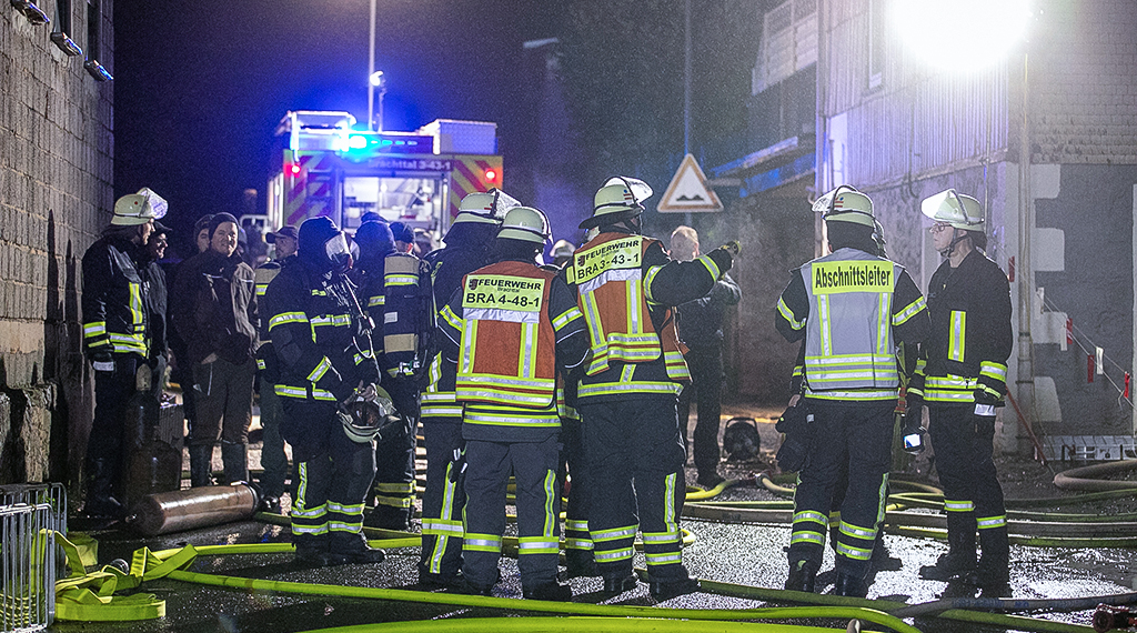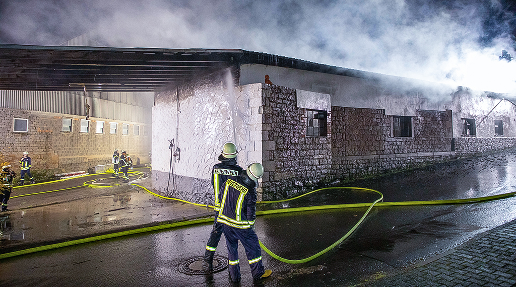 Mitten im Ortskern von Brachttal ist am späten Abend ein Feuer ausgebrochen. Lichterloh stand eine Scheune auf einem Bauernhof in Flammen. Als die Feuerwehr eintraf, drohten diese auf ein angrenzendes Wohnhaus sowie einen Stall mit Kühen überzugreifen. Die 80 Einsatzkräfte bauten sofort eine Riegelstellung auf, um die Anwesen zu halten und die Tiere zu schützen. „Als die Rückmeldung dann kam, dass keine Tiere oder Menschen in Gefahr sind, kam Erleichterung auf“, so Einsatzleiter Maximilian Kröll. Zeit zum Durchschnaufen gab es aber nicht. Denn in der Scheune, die als Werkstatt und Lagerfläche für Maschinen genutzt wurde, befanden sich auch zahlreiche Gasflaschen. Unter Atemschutz wurden diese ins Freie gebracht und gekühlt. Die Feuerwehr konnte im weiteren Verlauf den Brand zügig unter Kontrolle bringen. Sicherheitshalbe wird eine Brandwache die ganze Nacht über vor Ort bleiben. Was den Brand auslöste, ist unklar. Die Scheune ist vollends zerstört. +++
