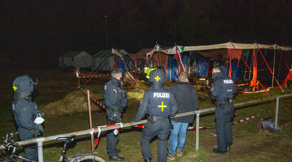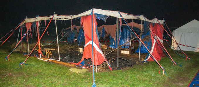 Um 00.30 Uhr meldete die Leitstelle des Vogelsbergkreises einen Gebäudebrand in der Gemarkung Dannenrod in der Straße „Zur Waldecke“. Beim Eintreffen der Feuerwehr stellte sich heraus, dass ein Versorgungszelt in Dannenrod, indem sich Personen aufhielten und das mit Ofen und Strohballen bestückt war, in Brand geraten war. Die Feuerwehr hatte den Brand schnell unter Kontrolle. Die Brandursache ist derzeit noch unklar, vermutet wird ein technischer Defekt. Die Kriminalpolizei hat die Ermittlungen aufgenommen. Vor Ort war eine Hundertschaft der Polizei, die das Gelände weiträumig abgeriegelt hat. Über die Höhe des Sachschadens konnte die Polizei noch keine Angaben machen, vermutlich mehrere Tausend Euro. Verletzt wurde zum Glück niemand. Am Einsatzort waren die Feuerwehren aus Homberg (Ohm), Appenrod und Dannenrod mit 40 Einsatzkräften. Auch der Rettungsdienst war vor Ort. +++