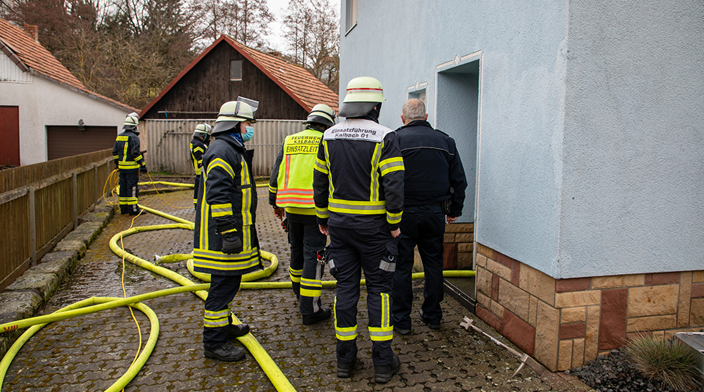 Ein Brand wurde am Dienstag gegen 10.50 Uhr in der Uttrichshausener Straße in Oberkalbach gemeldet. Das Feuer brach im Keller aus und zog bis ins Hochparterre. Nach ersten Informationen wollte ein älterer Mann im Kellergeschoss einen Holzofen anfeuern. Dabei gab es wohl eine Verpuffung. Unter anderem geriet neben dem Ofen gelagertes Holz in Brand. Das Feuer breitete sich aus und zog durch die Decke ins Hochparterre, wo unter anderem Möbel beschädigt wurden. Die Feuerwehr hatte den Brand schnell unter Kontrolle. Die Wohnung ist wegen der Brandfolgen und der Schäden durch das Löschwasser aber zunächst unbewohnbar. Der Sachschaden geht in die Zehntausende. Nach dem Ablöschen des Brandes begann die Feuerwehr mit Belüftungsmaßnahmen. Im Einsatz waren mehrere Freiwillige Feuerwehren aus der Gemeinde Kalbach sowie die Feuerwehr Fulda mit insgesamt rund 45 Personen. Die Bewohner wurden vor Ort vom Rettungsdienst behandelt, mussten aber nicht ins Krankenhaus. Neben der Feuerwehr waren Polizei, Rettungsdienst und der Rettungshubschrauber im Einsatz. +++ [su_112]