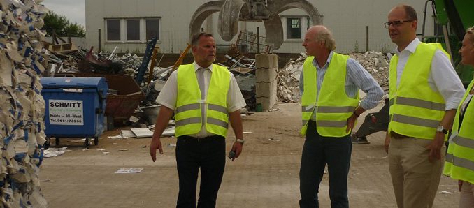 Zudem sei das Schmitt „als mittelständisches Familienunternehmen in der Region verankert und nahe am Kunden. Und solide regionale Arbeitsplätze gibt es dadurch auch noch“, hob der Abgeordnete hervor, der bei seinem Besuch von Firmeninhaber Wolfgang Schmitt, dessen Tochter Nicole Schmitt sowie IHK-Hauptgeschäftsführer Stefan Schunck begleitet wurde. Bei „Recycling Schmitt kann man sehen, wie in der Praxis Umwelt und Wirtschaft bestens miteinander kombiniert werden können. Die Innovation unternehmerischen Handelns und die Vorgaben im Umweltbereich erbringen gemeinsam eine Ressourcen effiziente Wirtschaft, die in Zukunft angesichts abnehmender Rohstoffe noch bedeutender werden“, betonte Brand. Brand sagte, dass „in der regionalen Partnerschaft zwischen Mittelstand und Kommunen die Zukunft“ liege. Man brauche weder Konzerne noch kommunalem Monopol, „sondern eine gesunde Mischung“. Zum Informationsaustausch zählten auch aktuelle Fragen wie zum Beispiel die Zukunft der duale Systeme und der Verpackungsverordnung sowie die flächendeckende Einführung der Biotonne. +++ fuldainfo