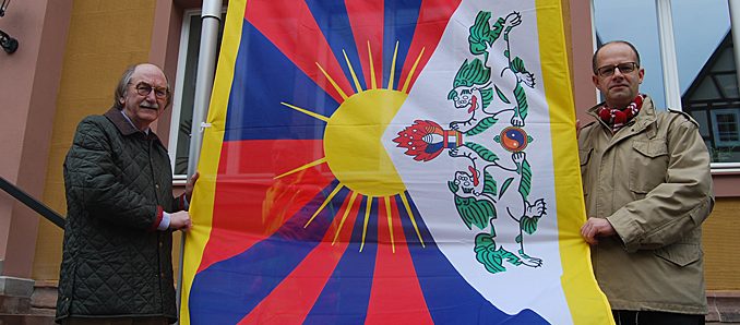 Lauterbach. Der heimische Bundestagsabgeordnete Michael Brand und der Bürgermeister der Kreisstadt Lauterbach, Rainer-Hans Vollmöller, haben aus Anlass des Internationalen Tibet-Tages symbolisch die Flagge Tibets am Lauterbacher Rathaus gehisst, die am heutigen 10. März weht. Dieses Datum erinnert an die gewaltsame Besetzung Tibets durch die Volksrepublik China vor fast 60 Jahren und mahnt zur Achtung des Selbstbestimmungsrechtes und der kulturellen und religiösen Rechte der Tibeter.