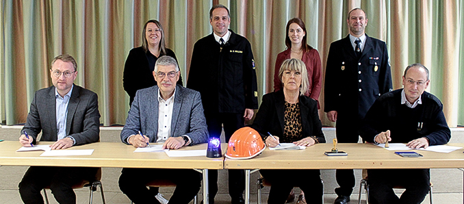 Im ersten Jahr wird dieses Projekt durch die Koordinatorin der Brandschutzerziehung des Vogelsbergkreises, Heidi Schmidt, unterstützt, indem sie selbst den Unterricht übernimmt. Hierbei steht ihr Angelina Heun, Lehrerin an der Oberwaldschule und selbst Feuerwehrfrau, zur Seite. Später soll der Unterricht durch ehrenamtliche Feuerwehrleute erfolgen. „Ein tolles und enorm wichtiges Projekt, welches hier angegangen wird“, lobt Landrat Manfred Görig bei der Unterzeichnung des Kooperationsvertrags zwischen Schule, Landkreis und Gemeinde. „Es ist der richtige Weg, den Jugendlichen schon zu Schulzeiten aufzuzeigen, wie wichtig das Ehrenamt ist – besonders die Feuerwehr. Denn, wenn unseren freiwilligen Feuerwehren der Nachwuchs ausgeht, werden Autounfälle, Waldbrände oder unter Wasser stehende Keller bald zu noch größeren Herausforderungen werden, weil keine ausreichende Anzahl an Helfern vor Ort ist.“ Auch Erster Kreisbeigeordneter Dr. Jens Mischak freut sich, dass die Oberwaldschule nun potentiellen künftigen Feuerwehrleuten den Weg in den Verein ebnet: „Wir werden um jeden froh sein, der in die freiwillige Feuerwehr eintritt. Mit dem Wahlpflichtfach ,Feuerwehr‘ bekommen die Jugendlichen einen Einblick ist die Arbeit der Feuerwehr und erfahren Werte wie Zusammenhalt, Kameradschaft, Hilfsbereitschaft sowie Teamwork.“