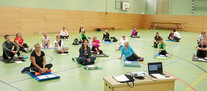 Im Sportkreis Fulda-Hünfeld e. V. wurde in Zusammenarbeit mit der Gesundheitsschmiede Neuhof ein Breiten- und Freizeitsportlehrgang durchgeführt. Mit viel Engagement und der notwendigen „POWER“ leitete Referentin Frau Mattea Heil aus Neuhof den Lehrgang mit insgesamt 20 Teilnehmerinnen in der Kreissporthalle in Petersberg. Das Rahmenthema „Halte Dich in Balance – mit Mobilisation, Faszienfitness und funktionellem Training“ – modern und einfach in jede Sportstunde zu integrieren, begeisterte alle Teilnehmerinnen. Isolde Wiegand vom Vorstand des Sportkreises freut sich bei der Begrüßung mit der Unterstützung des Landkreises Fulda und der Stadt Fulda, wieder zahlreiche Teilnehmerinnen begrüßen zu können, und stellte anschließend den Lehrgang vor und übergab dann an die Referentin Frau Heil, welche im Rahmen des Tageslehrgangs die Erhaltung und Förderung der Bewegungsfähigkeit die Teilnehmerinnen weiterbildete. +++