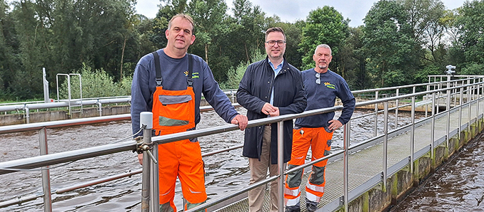 Bürgermeister Christopher Gärtner besichtigte heute die Kläranlage Flieden und zeigte sich beeindruckt von der modernen Ausstattung und der Kompetenz der beiden Klärwärter Frank Müller und Bernhard Firle. Er lobte die professionelle Arbeit und die langjährige, erfolgreiche Zusammenarbeit mit RhönENERGIE, die den Betrieb der Anlage verantwortet.