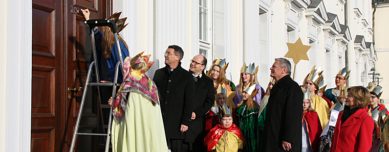 Berlin/Fulda. „Ihr zieht überall durch die Welt eine ganz helle Spur der Freundlichkeit, der Zuneigung und der Nächstenliebe, eine Spur, die praktisch um die ganze Erde geht, und heute ist diese Lichtspur im Schloss Bellevue. Ihr wollt mir davon erzählen und ich bin dankbar“, mit diesen Worten dankte Bundespräsident Joachim Gauck heute 40 Sternsingern aus dem Bistum Fulda, die ihm und seiner Lebensgefährtin Daniela Schadt am Dreikönigstag den Segen in seinen Amtssitz brachten.