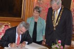 Vor Begegnung mit Bundespräsident Joachim Gauck bei den Bad Hersfelder Festspielen besuchte Österreichs Bundespräsident Heinz Fischer mit Gattin Margit die Domstadt. Mit der Wiener Hofburg, dem Amtssitz des österreichischen Bundespräsidenten Prof. Dr. Heinz Fischer, kann das Fuldaer Stadtschloss nicht konkurrieren. Dennoch genoss Österreichs Staatsoberhaupt gemeinsam mit Ehefrau Margit und Botschafter Dr. Ralph Scheide sichtlich den Rundgang durch die historischen Räume des Schlosses, durch den Kaisersaal, Schlossgarten, Michaelskirche und schließlich den Dom bei seinem Kurzaufenthalt in Fulda.