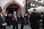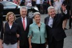 Bad-Hersfeld/ Fulda. Bundespräsident Joachim Gauck hat am Sonntag gemeinsam mit Österreichs Bundespräsident Heinz Fischer die Bad Hersfelder Festspiele besucht. Gauck war in Begleitung seiner Lebensgefährtin, Fischer wurde von seiner Ehefrau Margit begleitet. Mit dabei war auch der Staatsminister im Auswärtigen Amt, Michael Roth von der SPD und der hessische Minister für Wissenschaft und Kunst, Boris Rhein. Vor dem Rathaus hatten sich rund 400 Menschen eingefunden, um die beiden Staatsoberhäupter zu sehen.