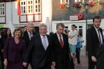 Bundespräsident Gauck und seine Partnerin Daniela Schadt wurden zunächst vom Hessischen Staatsminister für Wissenschaft und Kunst, Boris Rhein, und von Bürgermeister Thomas Fehling mit Partnerin Gabriele Schäfer vor dem Historischen Rathaus begrüßt. Wenig später trafen dann der Bundespräsident der Republik Österreich, Herr Dr. Heinz Fischer, mit Ehefrau Margit ein. Bürgermeister Thomas Fehling stellte in seinem Grußwort die lange und erfolgreiche Tradition österreichischer Schauspieler und Intendanten bei den Bad Hersfelder Festspielen heraus. In einem kleinen Empfang vor den Spitzen aus Magistrat und Stadtverordnetenversammlung dankte er dem höchsten Repräsentanten der Bundesrepublik ebenso für die Unterstützung der Festspiele wie dem Land Hessen und den Sponsoren der Festspiele. Bundespräsident Joachim Gauck und sein österreichischer Amtskollege Dr. Heinz Fischer haben sich im Rathaus in das Goldene Buch der Stadt Bad Hersfeld eingetragen. Anschließend kehrte man in das Restaurant „Stern“ zum gemeinsamen Abendessen ein. Nach dem Essen ging es dann zu Fuß zur Stiftsruine, hierbei hat die Staatsoberhäupter – bei herrlichem Wetter und der gut besuchten Innenstadt – der Applaus von zahlreichen Menschen begleitet. Gauck und Fischer waren nebst Begleitung Ehrengäste bei der Aufführung „Maria Stuart“.