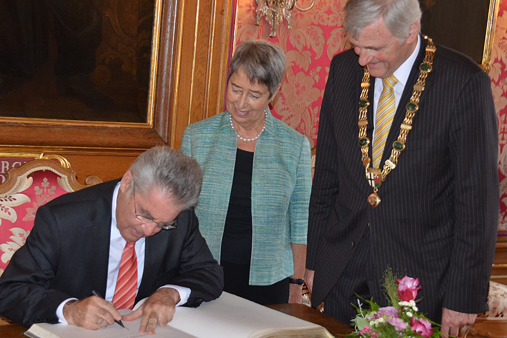 Fischer beim Eintrag ins goldene Buch der Stadt Fulda.