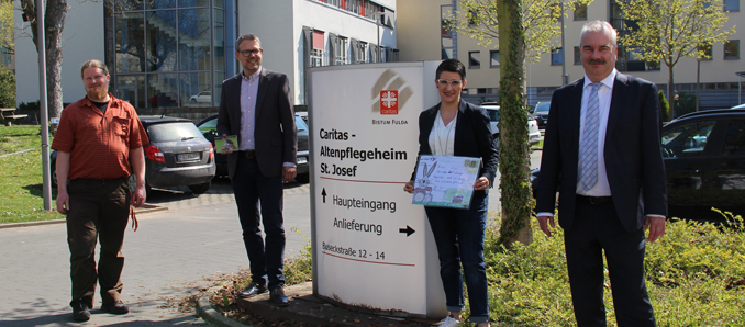 Die ersten der von Kindern und Jugendlichen aus der Caritas-Einrichtung  „Jugendhilfeverbund St. Elisabeth“ bunt gestalteten Ostergrußkarten erhielt der Einrichtungs-leiter des Fuldaer Caritas-Altenpflegeheims St. Josef, Oliver Trousil. Überbringer waren der Leiter des Jugendhilfeverbundes, Christof Schneider sowie aus der Caritas-Zentrale Diözesan-Caritasdirektor Dr. Markus Juch und Altenhilfe-Ressortleiterin Kristin Klinzing.