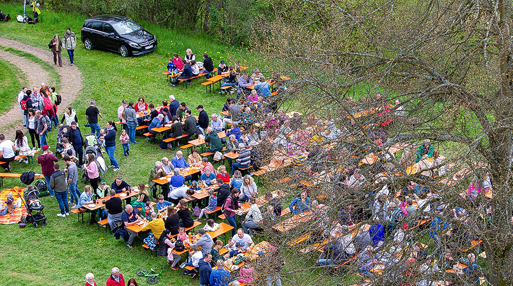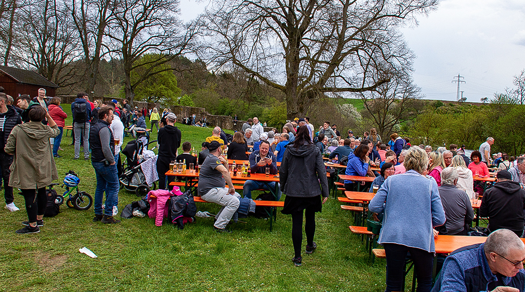 Wolfgang Bönsel, 1. Vorsitzender von der Fördergemeinschaft zur Rettung der Burgruine Wartenberg, zeigte sich sehr zufrieden mit dem Wetter und den rund 1.000 Besucherinnen und Besuchern, die am Montag auf die Burgruine gekommen waren. Seit rund sieben Jahren macht er den Job schon, wie er gegenüber der Vogelsberger Zeitung erzählt. „Eines der Highlights unseres Vereins ist jedes Jahr am 1. Mai unser Maifest auf der Burgruine Wartenberg“, so Bönsel. Die Erhaltung und die Pflege der Burgruine Wartenberg ist die Hauptaufgabe des Vereins. Einmal im Jahr veranstaltet der Verein zudem ein mittelalterliches Konzert u. a. mit den „Spielleute“ aus Fulda, die sich in mittelalterlichen Kostümen kleiden und mittelalterliche Instrumente spielen. Diese Veranstaltung ist dieses Jahr wieder im Juni.