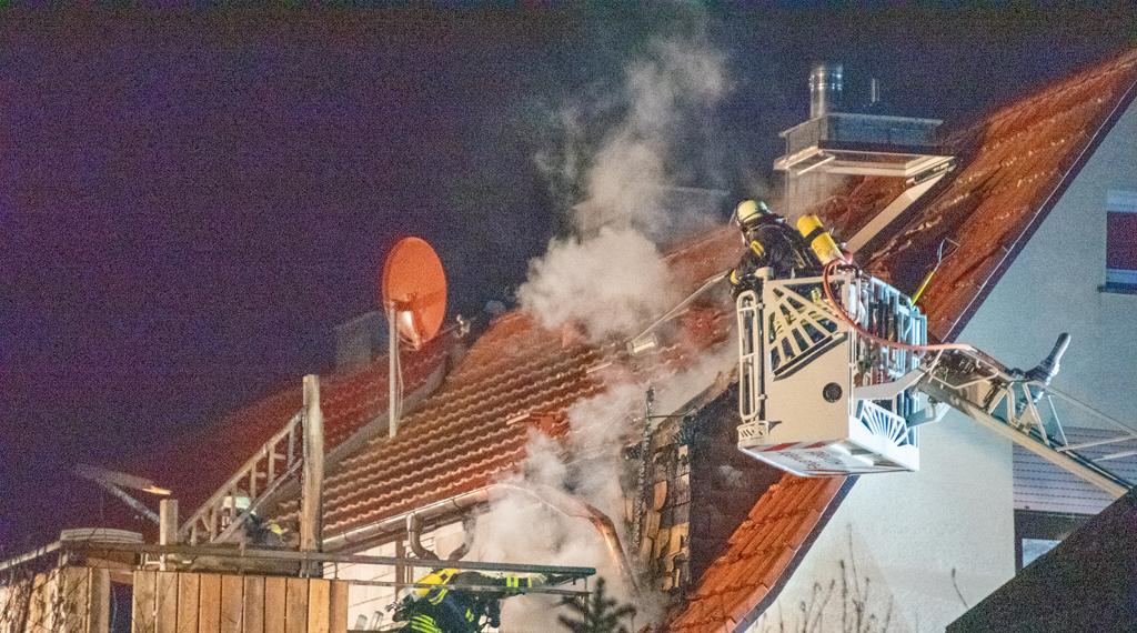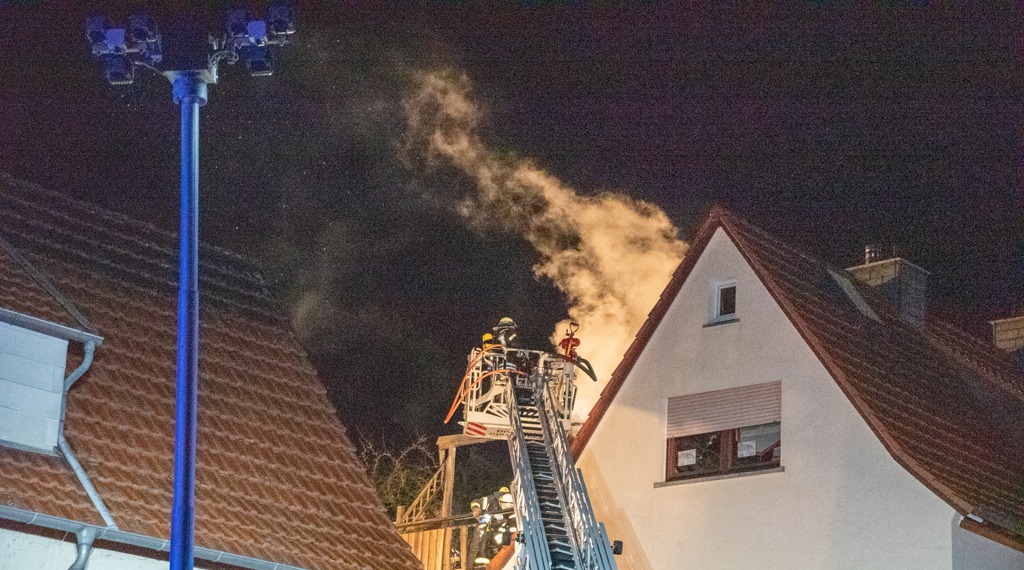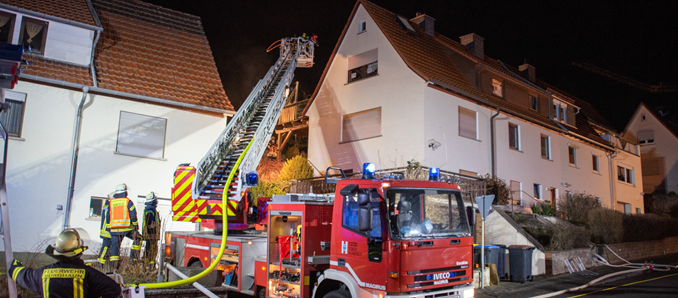 Offenbar durch einen technischen Defekt in der Stromverteilung geriet am späten Mittwochabend in Burghaun ein Anbau einer Doppelhaushälfte in Brand. Als die Feuerwehr an der Einsatzstelle Am Galgenberg eintraf, hatten die Flammen bereits auf den Dachstuhl des Wohnhauses übergegriffen. Eine noch im Gebäude befindlichen Familie konnten die Einsatzkräfte zum Glück noch unverletzt in Sicherheit bringen. Bei den anschließenden Löscharbeiten kam auch eine Drehleiter zum Einsatz. Die rund 60 Einsatzkräfte konnten ein Übergreifen auf die zweite Haushälfte verhindern. Dennoch entstanden am Gebäude massive Brand- und Rauchschäden, so dass die betroffene Haushälfte derzeit nicht bewohnbar ist. Die genaue Schadenshöhe steht noch nicht fest, dürfte aber immens sein. +++