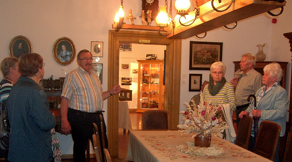 Zunächst galt es, das sehr vielseitig mit Exponaten ausgestattete Burgmuseum zu besuchen, wo es Museumsleiter Wilhelm Ziegler, nicht einmal ein geborener Schlitzerländer, sehr gut verstand, alles Ausgestellte zu erläutern, er hat sich offenbar mit erstaunlichem Engagement in diese schöne Aufgabe eingearbeitet. Interessant zu hören, wieviele Gäste der Burgenstadt, im Gegensatz zu der dort heimischen Bevölkerung, durch die Räumlichkeiten der Vorderburg führen lassen, wobei die aktuellen Besucher leider keine Ausnahme machten, aber alle begeistert, beim Verlassen dieser Einrichtung, Wilhelm Ziegler Dank und Anerkennung aussprachen.