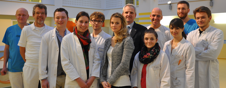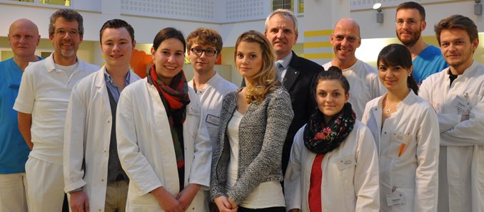 „Das Projekt „Universitätsmedizin Marburg – Campus Fulda“ ist gut angelaufen“, erläutert der Leiter der Studienkommission Priv.-Doz. Dr. Achim Hellinger (Direktor der Klinik für Allgemein- und Viszeralchirurgie am Klinikum Fulda). „Vormittags wird Unterricht am Patientenbett abgehalten, nachmittags stehen verschiedene Seminare auf dem Programm“, so Prof. Dr. Reinald Repp, der die angehenden Mediziner zusammen mit den Oberärzten während des Aufenthalts in der Klinik für Kinder- und Jugendmedizin betreut.