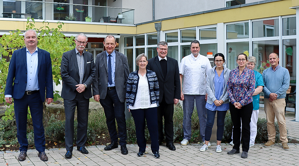 Erste Station war eine der stationären Caritas-Pflegeeinrichtungen für alte Menschen, das Seniorenhaus St. Bonifatius in Kassel. Durch einen Rundgang mit Einrichtungsleiterin Petra Hofmann gewann Prälat Steinert einen guten Eindruck von der Heimatmosphäre in dem U-förmig errichteten, lichten Gebäudekomplex, der rund 100 Pflegeplätze bietet, Dabei kam der Generalvikar auch unmittelbar mit Bewohnerinnen und Bewohnern ins Gespräch.