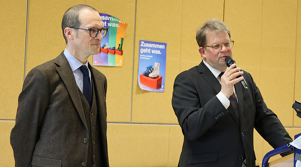 Wingenfeld erinnerte an den eher unscheinbaren Anfang einer Entwicklung, die inzwischen konkrete Formen angenommen hat. In einer Art „Bierdeckelaktion“ habe die Caritas einst notiert: Wir brauchen mehr Wohnraum. Auf die Frage, wer das denn umsetzen solle, sei die Antwort von Dr. Juch und Ansgar Erb ebenso schlicht wie folgenreich gewesen: „Wir machen das zusammen.“ Für den Oberbürgermeister markiert genau dieser Moment den Ausgangspunkt für viele Projekte, die daraus entstanden sind.