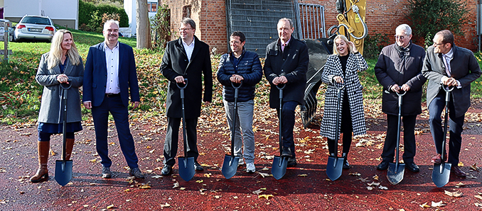 Die Feierstunde zum Baustart bestand dann aus dem kirchlichen Segen für die Baustelle und das Bauprojekt durch den Caritas-Aufsichtsratsvorsitzenden Msgr. Elmar Gurk, der offiziellen Übergabe des Förderbescheids von Oberbürgermeister Wingenfeld an Caritasdirektor Juch und Vorstandsmitglied Erb sowie aus einem symbolhaften Spatenstich, an dem sich weitere Vertreter von Stadt und Caritas gerne beteiligten. +++ pm