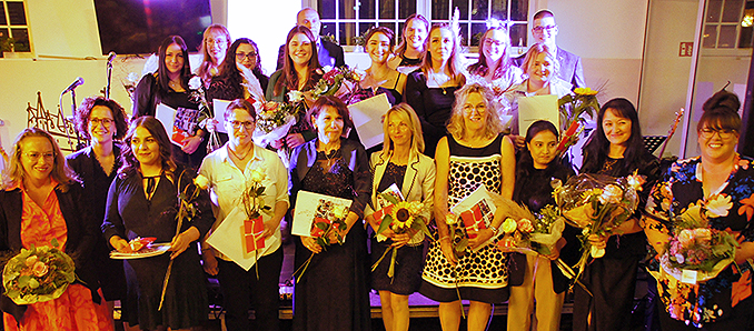 Im zur Caritas gehörigen Café bunt.Werk übergab Dajana Herbst, Leiterin der Caritas- Pflegeschule, den glücklichen Absolventinnen und Absolventen ihre Examen. Mit dabei waren außerdem Claudia Pfeffer (Caritas-Ressortleiterin Altenhilfe) sowie Einrichtungsleitungen, Pflegedienstleitungen und Praxisanleitungen als Vertreterinnen und Vertreter der involvierten Einrichtungen, in denen die Schülerinnen und Schüler ihren Praxisteil der Ausbildung absolviert hatten. Zudem sprachen Katrin Habl und Daniela Scheel als Kursleiterinnen in einer emotionalen Festrede ihre Glückwünsche aus. Nach der offiziellen Übergabe feierten die neuen Pflegefachkräfte mit ihren Begleitpersonen und den Vertreterinnen und Vertretern aus den Einrichtungen bei Snacks, Getränken und Livemusik bis in den späten Abend.