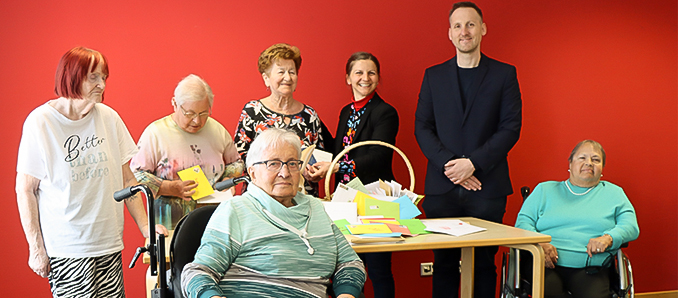Die Briefe verteilte man nun zur Hälfte an die Sozialstationen der Regionalcaritas in Stadt und Landkreis Fulda und an das Altenpflegeheim St. Josef. Das Foto zeigt, wie Fachreferentin Trupp die Briefe an Vertreterinnen der Bewohner des Josefsheims übergab. Sebastian Etzel, der Leiter der Einrichtung, war ebenfalls dabei. Der Heimbeirat im St. Josef kümmert sich darum, dass jeder Bewohner rechtzeitig zu Ostern einen Brief bekommt. Ein herzliches Dankeschön geht an alle Schreiber. +++