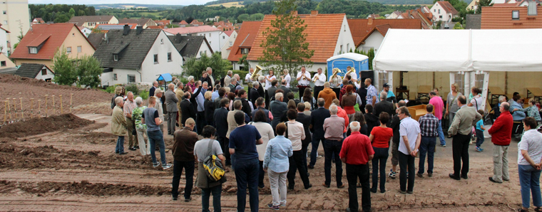 Grußworte kamen vom Generalvikar Prof Dr. Stanke, der alles Gute zur Verwirklichung des ehrgeizigen Projektes wünschte, sowie vom Ersten Kreisbeigeordneten Dr. Heiko Wingenfeld und vom Bürgermeister Hünfelds, Stefan Schwenk, die sich beide glücklich über nun erfolgende Umsetzung eines lang und gründlich entwickelten Plans zeigten. Nachdem der Aufsichtsratsvorsitzende der Caritas, Msgr. Elmar Gurk die Baustelle eingesegnet hatte, schritten die Redner und weitere zahlreiche Projektbeteiligte zum Spatenstich. Anschließend blieb die Festgemeinde noch zusammen und ließ den Festakt in gemütlicher Runde ausklingen. +++ fuldainfo