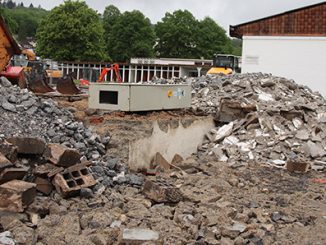 Die großen Schuttberge im Zugangsbereich des Schwimmbades zeigen deutlich, wie emsig dort derzeit gearbeitet wird. Das Kassenhäuschen mit Kiosk ist bereits den Baggern zum Opfer [Lesen Sie hier mehr...]