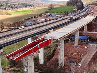 Der Brückenüberbau der Talbrücke Thalaubach, im Zuge der A7 bei Eichenzell-Döllbach, schiebt sich in 5 Stunden 25 Meter über das Tal. Der Überbau wird im [Lesen Sie hier mehr...]