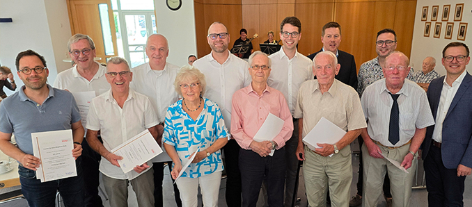 Zusammen symbolisieren die Jubilare 860 Jahre Mitgliedschaft in der CDU. Viele von ihnen beteiligten sich lange Zeit und zum Teil bis heute aktiv in der Kommunalpolitik, etwa der langjährige Fraktions- und Gemeindeverbandsvorsitzende Erhard Auth und Bürgermeister a.D. Christian Henkel. Der Vorsitzende Dr. Sebastian Huber freute sich, dass viele der Jubilare persönlich zur Entgegennahme von Urkunde, Ehrennadel und eines kleinen Präsents zu der Veranstaltung gekommen waren.