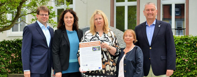 Fulda. Vertreterinnen und Vertreter aus 35 hessischen Unternehmen und Verwaltungen haben im Beisein von Stefan Grüttner, Hessischer Minister für Soziales und Integration, im Haus der Wirtschaft in Frankfurt mit der Unterzeichnung der Charta ihren offiziellen Beitritt zu dieser bundesweit einmaligen Initiative erklärt. Die Initiative wurde 2013 mit elf Erstunterzeichnern gestartet, heute identifizieren sich bereits 86 Unternehmen mit dem Ziel der Charta, die Herausforderungen der Vereinbarkeit von Beruf und Pflege aktiv anzunehmen. Die Entwicklung tragfähiger Lösungen für Beschäftigte, die Angehörige pflegen, wird auch von Landrat Bernd Woide und dem Ersten Kreisbeigeordneten Dr. Heiko Wingenfeld unterstützt. Die Arbeitsgruppe, zu der Melanie Doran, Dorothee Bug-Brod und Heike Fichte-Schmidt gehören, will im nächsten Schritt die Mitarbeiterinnen und Mitarbeiter nach den Sommerferien befragen, um den genauen Unterstützungsbedarf zu erheben. +++ fuldainfo