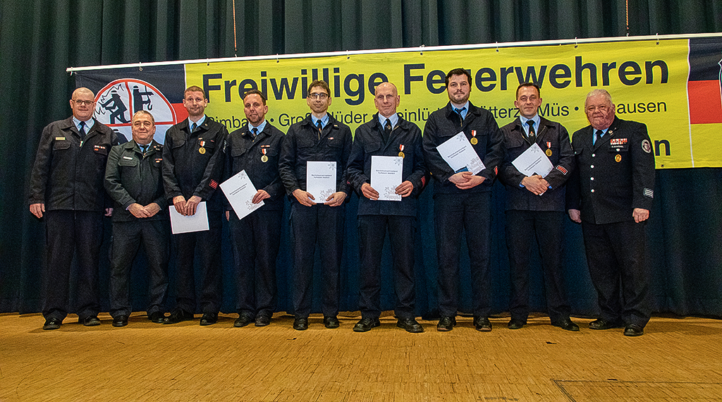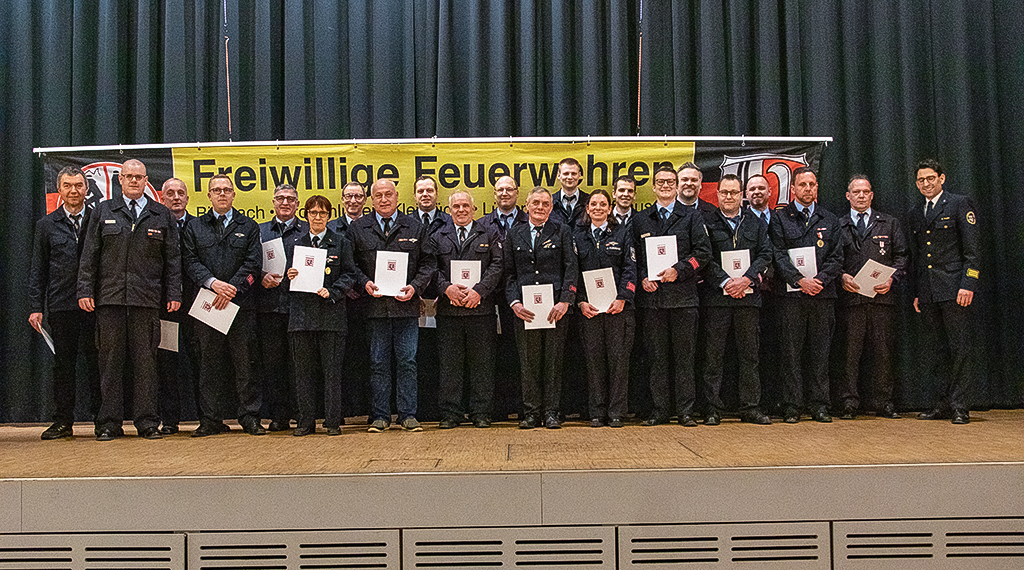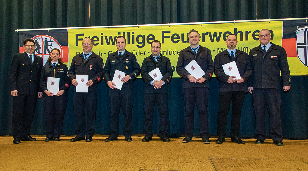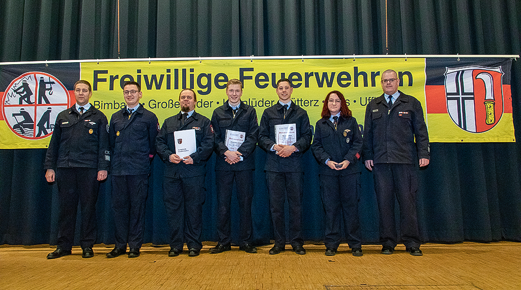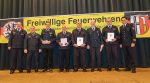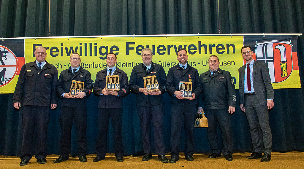 Florian Witzel wurde für seine 25-jährige Verantwortung der Freiwilligen Feuerwehr ausgezeichnet. Dabei habe er sich zunächst als Jugendfeuerwehrwart in Uffhausen in der Zeit von 1998 bis 2003 eingebracht, bevor er dann sein Engagement für fünf Jahre als stellvertretender Gemeindejugendfeuerwehrwart für alle Jugendfeuerwehren eingesetzt hat. Ab dem Jahr 2003 habe er darüber hinaus in seiner Funktion als stellvertretender Wehrführer Erfahrungen in der Führung von Einsatzkräften sammeln können, die er dann ab dem Jahr 2008 für 15 Jahre in der Einsatzabteilung in Uffhausen ausbauen und vor allem vermitteln konnte. „Lieber Herr Witzel, es ist mir eine große Freude, Ihnen heute Abend die Ehrenbezeichnung „Ehrenwehrführer“ zu verleihen“, sagte Bürgermeister Fritzsch. Es folgten weitere Ehrungen und Auszeichnungen.