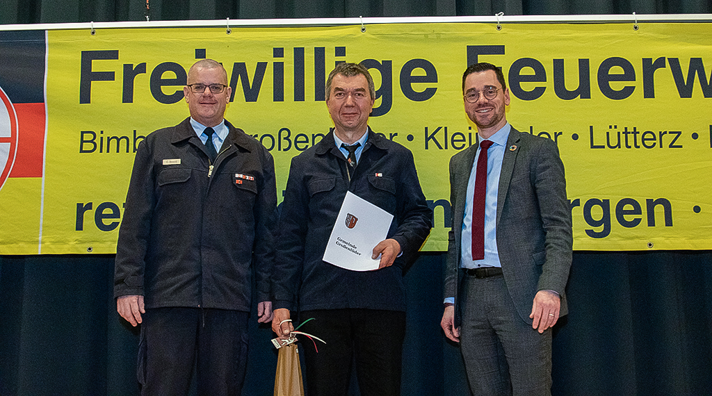 Ausgezeichnet wurde auch Berthold Döppner, der viele Jahre, auch schon vor 1998 als Wehrführer aktiv war. „In den vergangenen zehn Jahren hat er seine umfassende Expertise als stellvertretender Wehrführer im Ortsteil Lütterz eingebracht. Darüber hinaus trägt er seit vielen Jahren als Vorsitzender des Feuerwehrvereins Verantwortung. Er ist weder von der Feuerwehr noch aus Lütterz wegzudenken, ist stets agil und umtriebig und hat das Wohl des Ortsteils sowie der Feuerwehrmitglieder immer im Blick“, sagte Bürgermeister Florian Fritzsch.