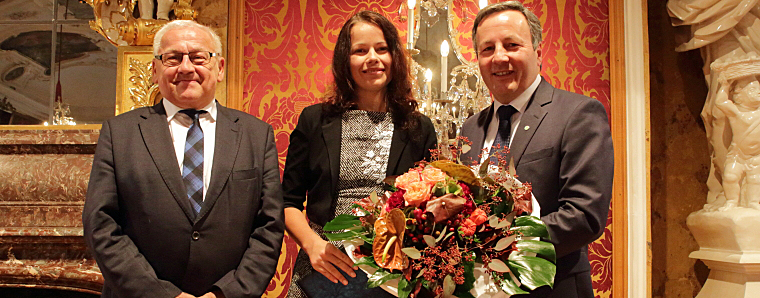 Stadtrat Wolfgang Arnold, Oxana Martevaia und Hochschulpräsidenten Prof. Dr. Karim Khakzar. (v.l.)