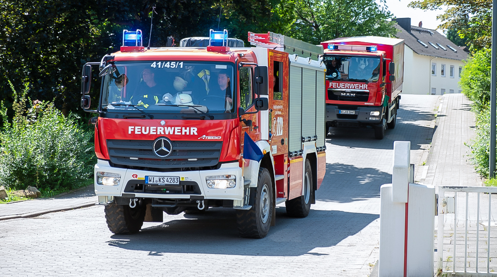 Dort empfing er gemeinsam mit Landrat Bernd Woide und Führungskräften aus Feuerwehr und Katastrophenschutz Kräfte, die im Hochwassergebiet in Nordrhein-Westfalen im Einsatz waren. Viele Osthessen seien auch noch vor Ort, beispielsweise das THW, die Firma Hartmann und viele mehr. „Das nennt man bürgerschaftliches Engagement im besten Sinne“, erklärte OB Dr. Wingenfeld. „Wir sind auch dankbar, dass so viele Arbeitgeber in Fulda ihre Mitarbeiterinnen und Mitarbeiter für diesen so wichtigen Einsatz von der Arbeit freistellen. In dieser Notsituation braucht es schnelle und unbürokratische Hilfe.“ Gleichzeitig sei auch der Einsatz der haupt- und ehrenamtlichen Feuerwehrkameradinnen und -kameraden nicht hoch genug einzuschätzen: „Gesellschaftlicher Zusammenhalt ist ganz wichtig, und dieser wird von unseren Helferinnen und Helfern gelebt“, so der OB. Aus dem Bereich der Feuerwehr der Stadt Fulda waren rund zwei Dutzend Einsatzkräfte mit insgesamt vier Fahrzeugen vor Ort, ein weiteres Fahrzeuge und weitere Kräfte stellte die Feuerwehr Großenlüder. Sie gehörten zu den Katastrophenschutzeinheiten, die über das hessische Innenministerium angefordert und koordiniert wurden.