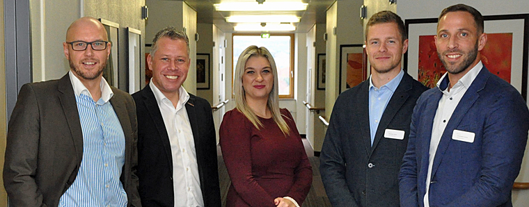 Starke Kooperationspartner in der Ausbildung künftiger Pflegefachkräfte: Die Geschäftsführer der Mediana Unternehmensgruppe, Bastian Hans und Thorsten Roch, Schulleiterin Marta Karon, Helios-Klinikgeschäftsführer Sebastian Mock und Klinik-Pflegedirektor Christopher Smith (v.l.) Foto: Helios