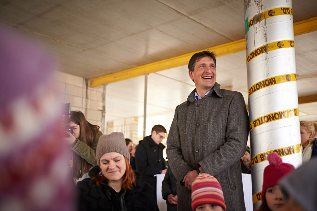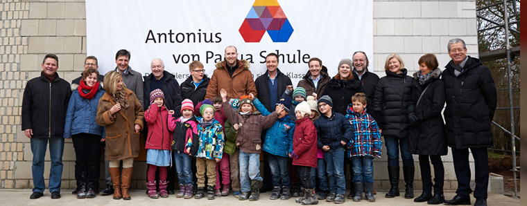 „Wir freuen uns sehr, dass die Konzeption unserer Idee von inklusiver Schule hier baulich eine Heimat finden wird“, sagte Rainer Sippel, Geschäftsführer des Antoniusheims, bei seiner Begrüßung. Er dankte allen, die am Bau mitgewirkt haben, insbesondere der Unternehmerfamilie Strauss, die den 3,8 Millionen Euro teuren Bau finanziert. Auch Gertraud Sorg, Vorsitzende der St. Antonius-Stiftung, dankte den Anwesenden und der Familie Strauss: „Sie haben etwas angestoßen, das Zukunft bietet. Dies ist ein Geschenk an viele Generationen von Schülern.“
